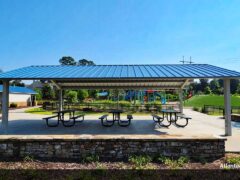 Morton Road Pocket Park opened in November 2020 in Johns Creek. This park is perfect for families because it has a big playground, two pavilions, and some green space. When we visited in 2024, even though it was four years old, the equipment still felt new.